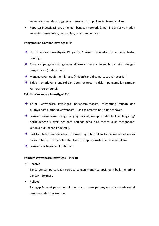 Tapi jawaban saya belum ada validasi kebenarannya. Tahapan persiapan wawancara jurnalistik menentukan narasumber membuat janji, menghubungi narasumber atau mengintai narasumber agar bisa ditemui. Memang harus dibedakan jalur ugd untuk pasien umum dan jalur ugd khusus jawaban narasumber: Perhatikan contoh wawancara berikut ! Dapatkan penjelasan bukan hanya jawaban.